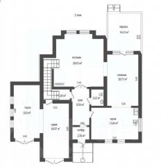 цоколь: бассейн с обратным течением, сауна, спортзал, постирочная, санузел, котельная.