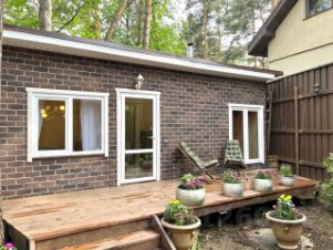 дом построен из бруса, фундамент свайно-ленточный, заливной. В 2024 году был капитальный ремонт всего дома (полная замена кровли с утеплением 200 мм, покрыта гибкой черепицей, утепление полов 200 мм, а так же фасада 50 мм с отделкой Хауберг. Полностью заменено: водоснабжение, электрика, система отопления и вся внутренняя отделка.