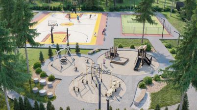 Теннисный корт и и футбольно - баскетбольная и Воркаут площадка для взрослых