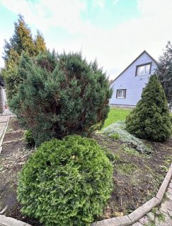 Участок: Ухоженный, с газоном, плодовыми деревьями (вишня, слива), туями и кустарниками. Есть гараж.