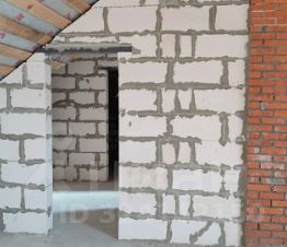 Гараж также их газоблоков, обложен кирпичом. В гараж подведено электричество.