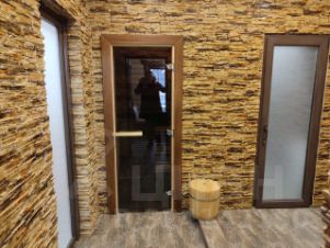 В бане отопление: тёплый пол(водяной).на первом этаже - Прихожая, комната отдыха, 2 душевые, санузел, парная, котельная с отдельным входом. 2 этаж с отдельным входом: Стильная студия с качественной отделкой и мебелью. Кухня-гостиная, санузел, душ.