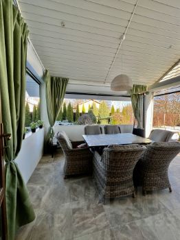 Установлена система контроля температуры воздуха в каждом помещении. Дом построен по технологии Veloux- монолитная конструкция. В нем тепло зимой и прохладно -летом.