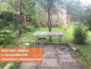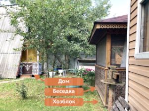 На территории грамотно расположены: дом, бытовка ~ 5 м², летний туалет и душ, беседка 9 м², хозблок с летней кухней и душевой, зона для отдыха.