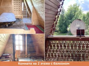 На втором этаже находятся: холл, комната ~ 8 м² с выходом на балкон. Также есть небольшой рабочий кабинет.