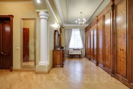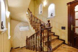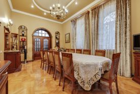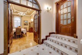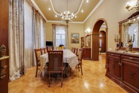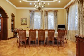 • Парадный этаж: Вас встречает каминный зал, объединенный с гостиной и столовой, просторная кухня, кабинет, спальня. Сердце дома — библиотека на два этажа, создающая неповторимую интеллектуальную атмосферу.