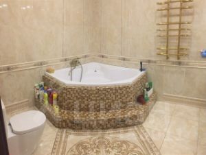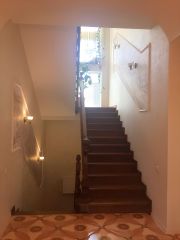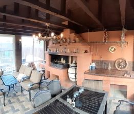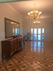 Внутренняя отделка стен - венецианская штукатурка и ручная роспись, полы - плитка и паркетная доска из тика, лестница выполнена из дуба.