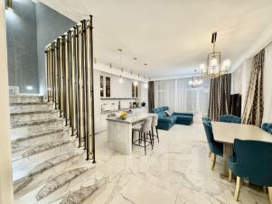Таунхаус укомплектован эксклюзивной мебелью.Все мебель и техника люксовых европейских производителей.Участок с патио для барбекю, газон, взрослые деревья.