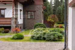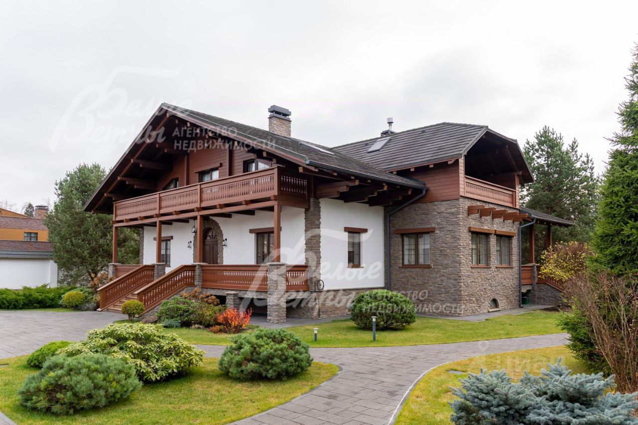 Код объекта в БД Агентства: 208-946. ВИК к/п. Премиальный меблированный дом в идеальном состоянии в престижном охраняемом коттеджном посёлке. Стены из кирпича, выразительная архитектура и отделка фасада в стиле шале: 1-ый этаж - камень, штукатурка, 2ой этаж - отделан лиственницей экстра-класса. Большие крытые террасы и лоджии. Дорогая композитная кровля с большими свесами, множество мощных деревянных балок и консолей. Деревянные стеклопакеты. В планировке - большие комнаты, есть SPA-зона, поражающий красотой камин. Внутренняя отделка "под тапочки", в современной стилистике, элитными материалами и с превосходным качеством. Мебель, сантехника, освещение от премиальных брендов. Мощная инженерия - немецкое котельное оборудование, системы бесперебойного энерго-обеспечения, видеонаблюдения, сигнализации, усиления сотовой связи и бесшовного интернета по всему участку. Роскошный и очень ухоженный участок, с парадной клумбой, вместительным паркингом, множеством взрослых деревьев, идеальным газоном; продуманный ландшафт оставляет простор и впечатляющие обзорные виды. Кроме основного есть также вспомогательный дом в стиле основного дома - с большим гаражом, гостевым блоком, и квартирой персонала.