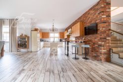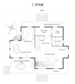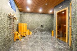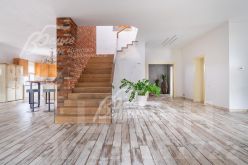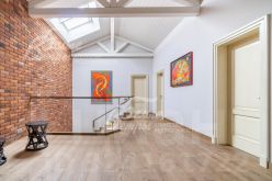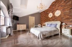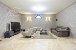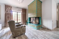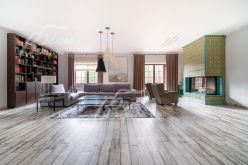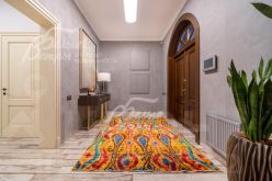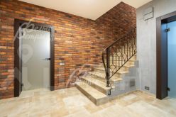 Описание внутренней отделки: отделка дома выполнена в современной стилистике из элитных материалов. Гармонично присутствуют элементы стилей: современная американская классика, лофт и французский прованс. Стены в помещениях общего назначения покрыты декоративной штукатуркой или окрашены премиальной английской краской Mylands по малярной бумаге (предотвращает образование трещин); на стенах в спальнях - обои York (США), часть стен декорирована клинкерной плиткой Feldhaus (Германия); на стенах в санузлах - итальянская плитка люксовых брендов. На полу 1-го этажа - керамогранит SANT'AGOSTINO коллекции BLENDART с матовой поверхностью (серый цвет, имитация некрашеной состаренной доски), на 2-м этаже - состаренная доска из дуба Terra (Wildwood). Потолки первого этажа выполнены из фактурной штукатурки с имитацией бетона. Эффектная лестница на железобетонном каркасе со ступенями, отделанными инженерной доской FINEX (дуб) и стеклянным ограждением. Роскошная входная двухстворчатая дверь с арочным окном утеплена и отделана панелями из массива дуба. Межкомнатные двери Ghizzi&Benatti (Италия) из массива каштана с сатиновым покрытием, окрашенные и декорированные патиной. Подоконники из итальянского мрамора. Радиаторы Arbonia и панельные стальные радиаторы PURMA. Итальянские люстры и светильники. Гостиную украшает камин гильотинного типа с с двусторонней топкой Spartherm (Германия) и впечатляющим порталом до потолка, облицованным фаянсовыми изразцами с ручной художественной росписью. Ещё один акцент пространства живописные полотна известных художников: некоторые картины созданы специально для этого дома. На цокольном этаже просторная комната отдыха с системой домашнего кинотеатра 5.1 HARMAN/ KARDON и мини-кухней, а также SPA-зона: баня с полками из абаша, стенами из кедра и с печью HARVIA с парогенератором, а также инфракрасная сауна, купель и экстрим-душ с обливным ведром. Часть входного марша с электрическим подогревом..