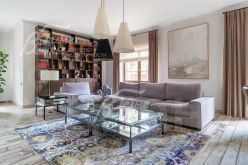 Мебель в прихожей и гостиной (комоды, книжные шкафы и большой стеллаж с подсветкой, журнальные столики, светильники) - от John-Richard (США), Poliform (Италия), Eichholtz (Нидерланды), Эстетика (Россия) и также выполнены на заказ.