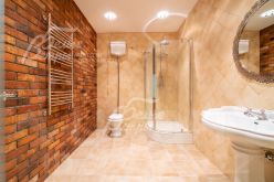В санузлах - сантехника в классическом и ретро-стиле элитных европейских брендов: раковины Villeroy&Boch (Германия), фаянс KERASAN (Италия), смесители THG (Франция), душевые кабины HUPPE (Германия) и душевые системы DEVON&DEVON (Италия).