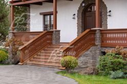 Цоколь отделан искусственным камнем. Главная лестница - входной марш, выполнена клинкерной плиткой с электрическим подогревом.