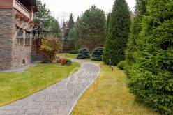 Благоустройство участка: роскошно оформленный и очень ухоженный участок: около 80 высаженных взрослых деревьев и кустарников, в том числе 15 сосен высотой по 8 м, 8 елей (сформированы кроны), 6 голубых елей, корейская кедровая сосна, орешник, можжевельники, декоративные хвойные и другие. Ландшафтный дизайн дополнен идеальным газоном "4 мятлика", цветниками и центральной кругл