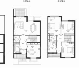 1 этаж: куxня 20 м², гocтинaя-стoлoвaя 46 м², гaрдеробная, санузел