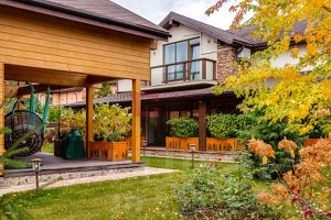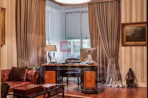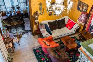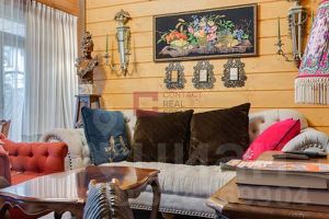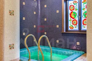 Проведены ландшафтные работы, высажены крупномеры и лесные деревья. Банный комплекс оформлен известным дизайнером. В комплексе гостиная со вторым светом и камином с изразцами, чайная комната с настоящей русской печью со спальным местом, SPA-зона (хаммам, русская баня, купель), комната для спорта, уютная спальня с ванной комнатой.