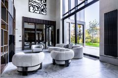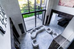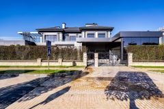 1 этаж: холл, гостиная с камином, вторым светом, зоной отдыха и выходом на террасу, кухня-столовая, спальня, с/у, гардеробная, кладовая, СПА-зона (бассейн, сауна, хаммам, с/у и душевая), спортзал, тех.комната, гараж, блок для персонала с отдельным входом.