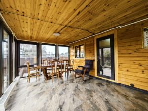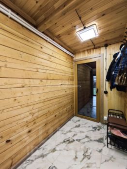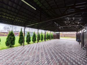 На участке выполнены дренаж, озеленение, детская зона, летняя обеденная зона с мягкими окнами и блоком для хранения инвентаря. Крытая парковка на три авто на территории, и на три авто за забором.