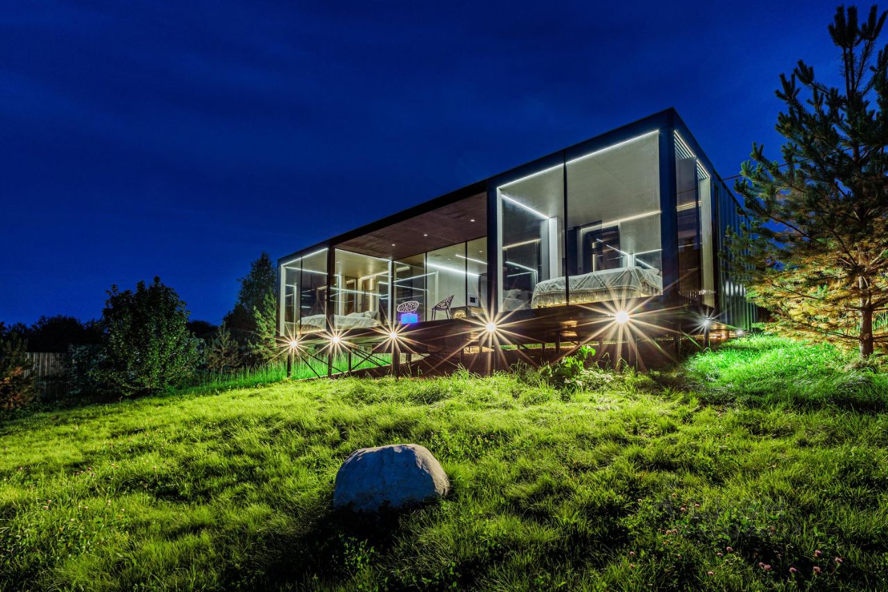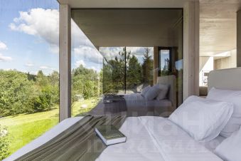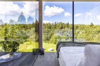 Панорамные окна в пол открывали захватывающие виды на окружающии лес и небо. Когда он смотрел в них, он видел, как облака, словно белые паруса, плавно движутся по голубому простору, меняя свои формы и оттенки создавая волшебные картины. Это зрелище наполняло его душу покоем и вдохновением, позволяя отвлечься от повседневнои суеты и насладиться красотои природы. Человек представил, как каждое утро бы здесь начиналось с мелодичного пения птиц, а вечера окутывались свежестью и тишинои, даря возможность забыть о суете городскои жизни.