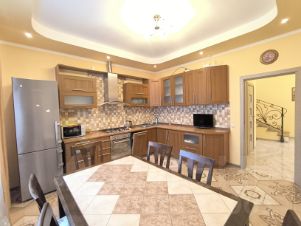 1эт- прихожая, огромная гостиная, отдельная кухня, спальня, с/у, 2эт - холл, 4 спальни, гардеробная, с/у, балкон. Из дома есть выход в теплый гараж и бойлерную.