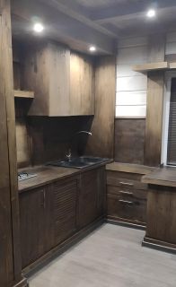 Дизайн всех помещений выполнен в едином стиле. Вода подается в дом из колодца, канализация септик, отопление печное и электрическое. Электричество 15 кВт..