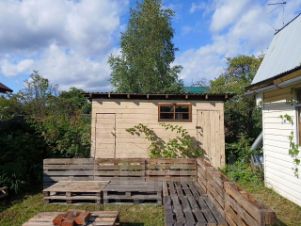 Дом 1 - площадь 100 м2. Был выполнен на свайный винтовом фундаменте по каркасных технологии дом полностью утеплён отопление электрическое используется на данный момент электрические батареи.