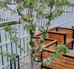 Выход на свой придомовой участок с садовой мeбелью, печью-гриль-мангал и другими необходимыми атрибутами, декоративным освещением участка и выводом воды.