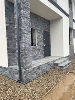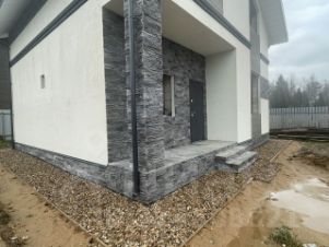 Дом из газоблоков, утеплён, перекрытия монолит, внешняя отделка штукатурка и камень. Кровля - двухскатная, металлочерепица. Окна Рехау. Фундамент: буро-набивные сваи на ленте, монолитная плита. Участок огорожен забором, калитка и откатные ворота.
