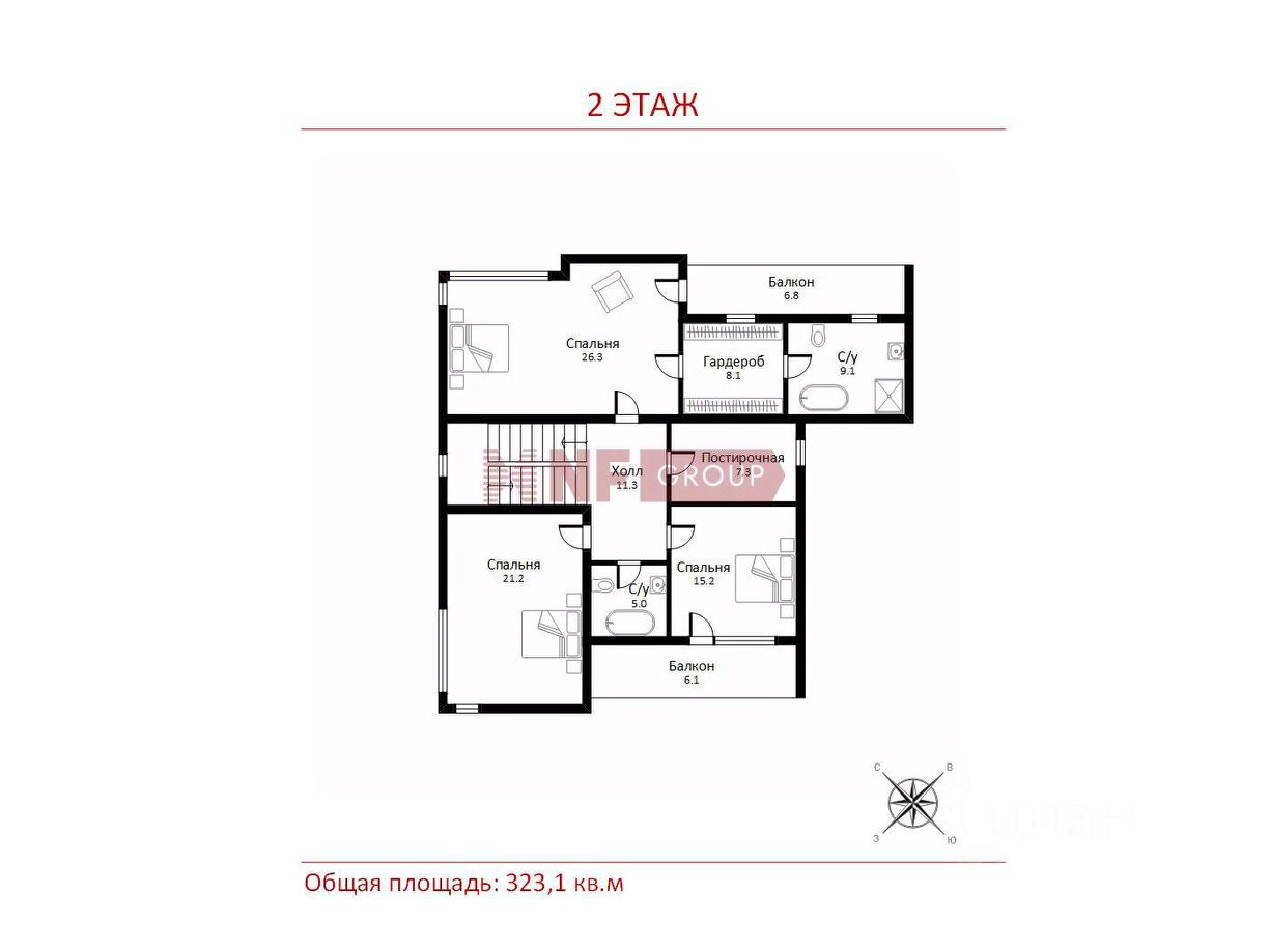 2 этаж: холл, две спальни, санузел, постирочная, спальня с санузлом и гардеробной.