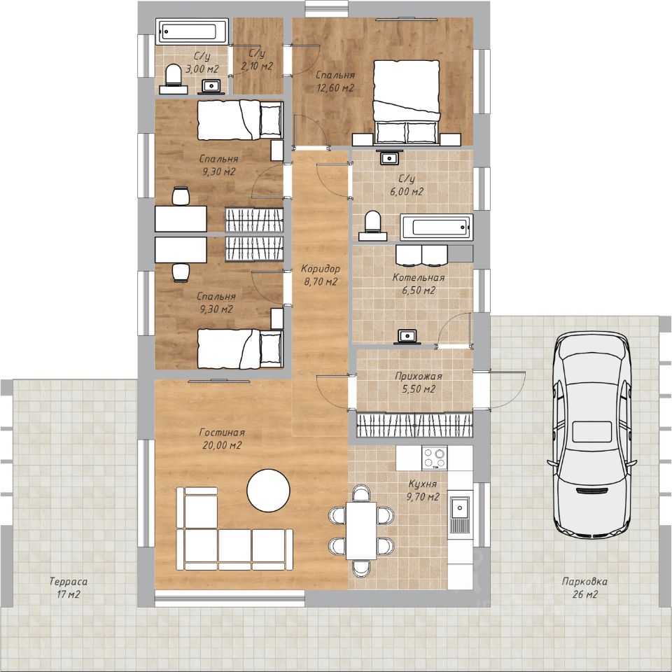 ИПОТЕКА, РАССРОЧКА, СЕРТИФИКАТЫ Фундамент: свайно-ростверковый с монолитной плитой Площадь: 100 м2