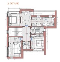 2 этаж: мастер-спальня с гардеробной и санузлом, две спальни и санузел, постирочная.