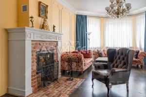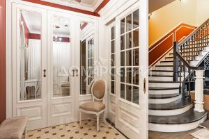 • Лестница из дерева ценных пород, камин с порталом из натурального белого мрамора и топкой производства Франция