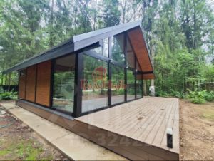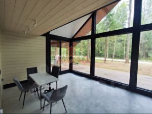 просторная кухня-гостиная 28, 0 кв.м. с панорамным остеклением и выходом на веранду в задней части дома - давая возможность встречать гостей и проводить уютные вечера как внутри дома, так и на свежем воздухе.