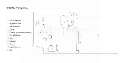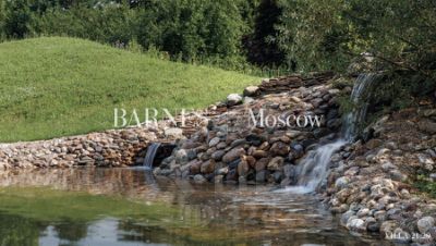 Участок с ландшафтным дизайном и рекой. Из них 33 сотки вековой хвойный лес. На территории обустроены пруд, пляж, баня, зона отдыха и барбекю, крытое парковочное место для двух автомобилей.
