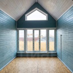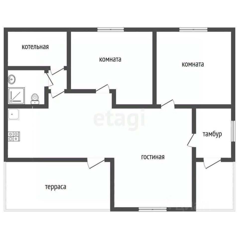 • В доме три комнаты: две по 16 м² и просторная кухня-гостиная 40 м²
