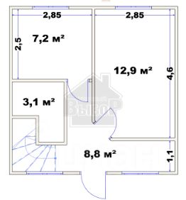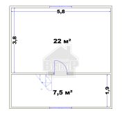 На 2-м этаже прихожая зона 7,5 кв. м. и большая комната 22 кв. м.