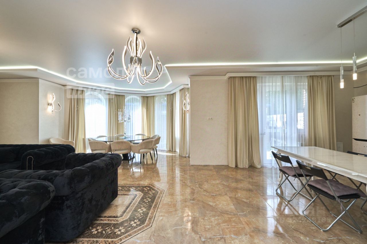 1-й этаж: гостиная-столовая (65 м²) с выходом на террасу, гостевая спальня, санузел, подсобные помещения