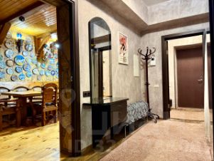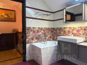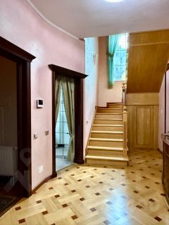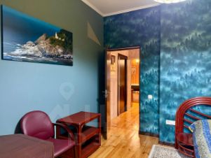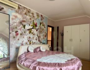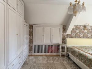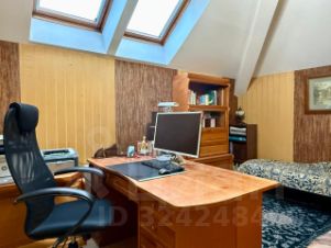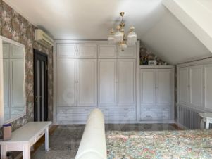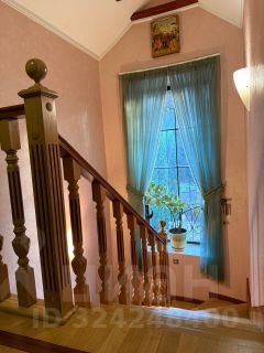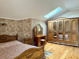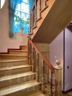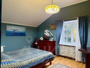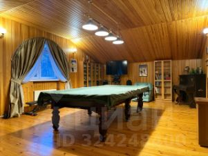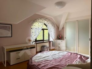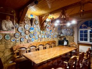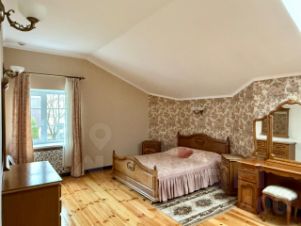 Третий дом из сруба 52 кв. м строился для персонала, сейчас сдается. На 1-м этаже комната с кухонной зоной, санузел, гардеробная; на 2-м спальня с балконом.