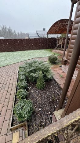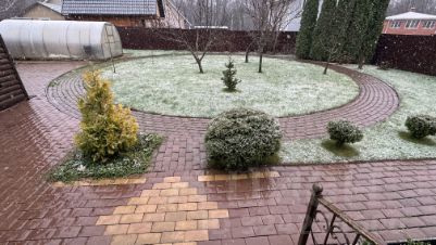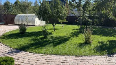 Ухоженный участок с газоном, декоративными растениями и небольшим садом (ягоды и плодовые деревья)