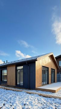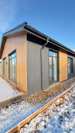 * Стены из блоков Bonolit, фасад — финская доска и планкен из лиственницы
