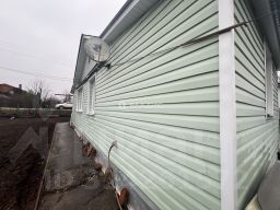 Дом деревянный, обложен кирпичом с утеплением, и обшит сайдингом.