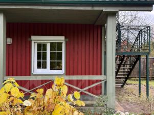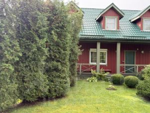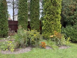 Участок площадью 10 соток, ухоженный, правильной формы, огорожен забором из доски 4см на кирпичных столбах. Высажены деревья, сосны, туи, кустарники, вишня, цветы. Въездные распашные ворота, парковочное место для 2-х автомобилей выложено брусчаткой, плюс одно парковочных места снаружи участка. От главной асфальтированной дороги, до ворот дома небольшой отрезок с ровным гравийным покрытием. Удобный круглогодичный подъезд, коммунальные службы в зимний период расчищают снег. На улице расположено всего 10 домов, многие соседи живут постоянно.