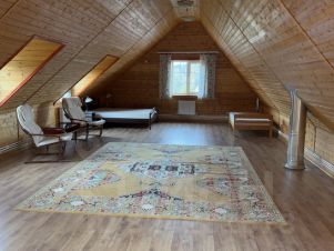 2 этаж: Небольшой тамбур-гардеробная (с выходом на балкон и лестницу, ведущую вниз), далее вход в просторное светлое помещение свободного назначения для реализации любых идей.
