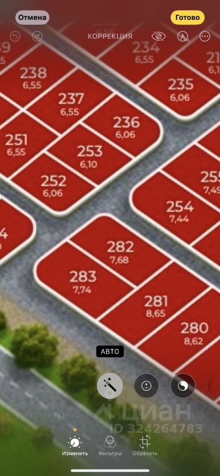 Можно увеличить участок до 15.42 соток, за счет участка 282 на плане), либо до 24,07 соток за счет участка 281( на плане)