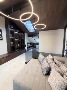 В таунхаусе выполнен качественный дизайнерский ремонт: Сантехника Villeroy & Boch и GROHE, Ванна и раковины Salini, камин Airton, винный шкаф maunfeld, двери UNION на заказ, входная дверь Бастион, стены - ручная работа/лепка. Вся мебель выполнена на заказ по индивидуальным меркам. В крыше на мансарде реализовано дополнительно 3 окна (всего 4)
