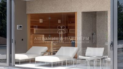 ID 314 Эксклюзив. Дом площадью 2700 м2, расположенный на участке 57 соток, поражает своим масштабом. Образец вкуса и стиля. Проект разработан известным архитектурным бюро. Дизайнеры впустили природу в дом, соединив её с роскошным интерьером. В доме спланирована гостиная с камином и вторым светом, столовая, 2 кухни, 7 спален с ванными комнатами и гардеробами (3 с выходом к бассейну, 3 с видом на бассейн и парк, мастер-спальня с большой гардеробной площадью 85 м2), игровая комната, SPA-зона с сауной, винная комната. Помещение свободного назначения 350 м2. Из панорамных окон открывается потрясающий вид на парк. На участке открытый бассейн с террасой для загара, веранда с барбекю, фруктовый сад. Предусмотрен отдельный дом для персонала: кухня, 2 спальни, 2 санузла, комната охраны. Миллениум Парк — это современный загородный поселок европейского типа в 19 км от МКАД по Новорижскому шоссе. На территории расположено 11 рукотворных каналов, озеро, благоустроенный пляж, ресторан с террасой с видом на воду, фитнес-центр, салон красоты, английский детский сад, футбольное поле с трибунами, автомойка. Профессиональная служба безопасности, пропускная система, контроль периметра. Вся инфраструктура Новой Риги в 10 минутах езды. Рядом находится Ломоносовская школа Интек, Павловская гимназия, ТЦ Твой Дом, супермаркет Азбука Вкуса, Wunderpark для всей семьи, гольф-клуб Агаларов Эстейт, Аутлет Новая Рига. Участник ассоциации AREA.