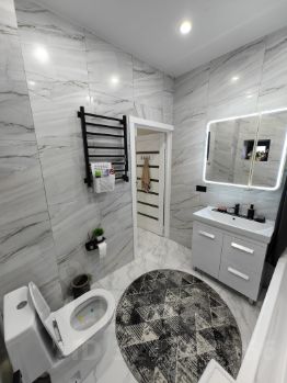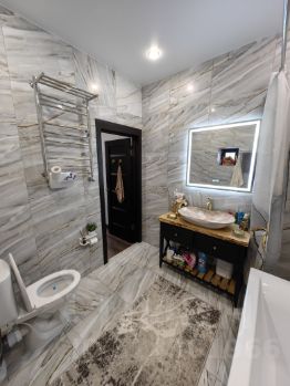 Две ванные комнаты остаются с тумбами и зеркалами (стиральную машину забираем)
