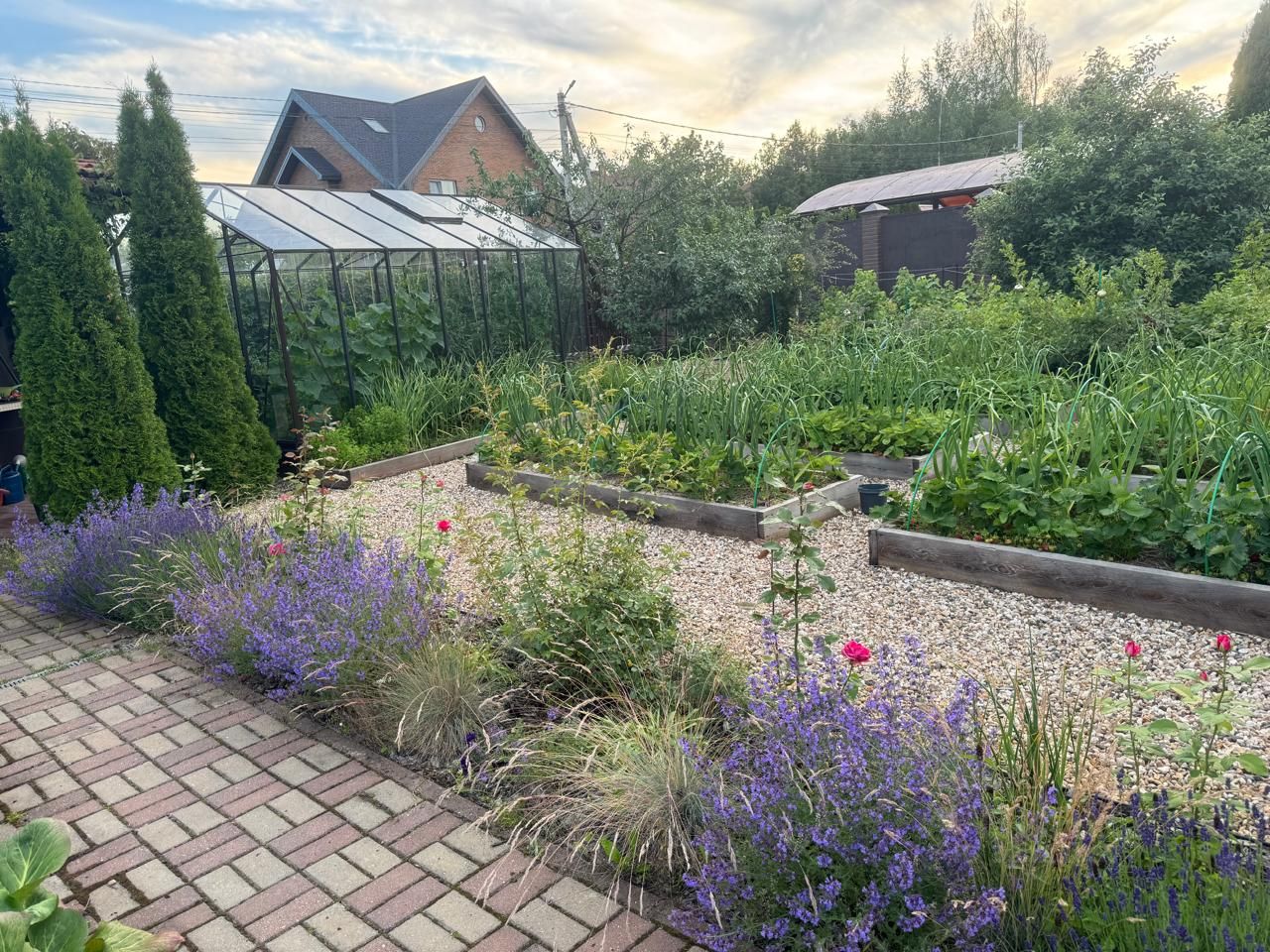 Участок 11,39 сотки. ИЖС, земли населенных пунктов. Ландшафтный дизайн. Хвойные, лиственные деревья, многолетние цветы, газон. Зона барбекю, стеклянная теплица, плодовый сад, грядки из лиственницы. Яблони, сливы, голубика, малина, смородина, жимолость. Участок огорожен капитальным забором на бетонном основании, автоматические ворота, вымощены дорожки, стоянка для машин. Гараж на 2 авто. Дренаж.