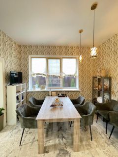 планировка: прихожая, коридор, кухня-гостиная с выходом на улицу в зону отдыха, библиотека (кабинет), спальня - детская, спальня - хозяев, общая туалетная комната и бойлерная.