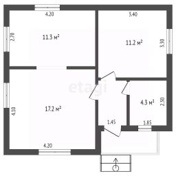 Планировка дома: две комнаты, большая кухня гостинная, помещение для совмещенного сан. узла.